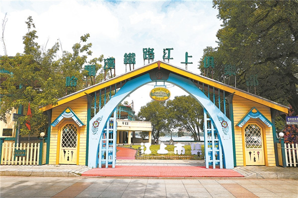 哈尔滨铁路江上俱乐部大门。