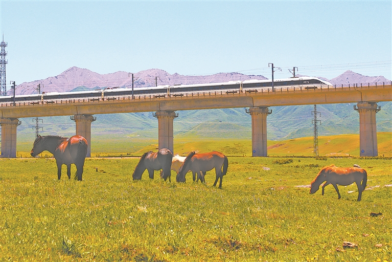 叶俊海摄影作品:列车穿越山丹马场草场
